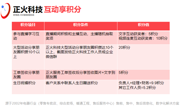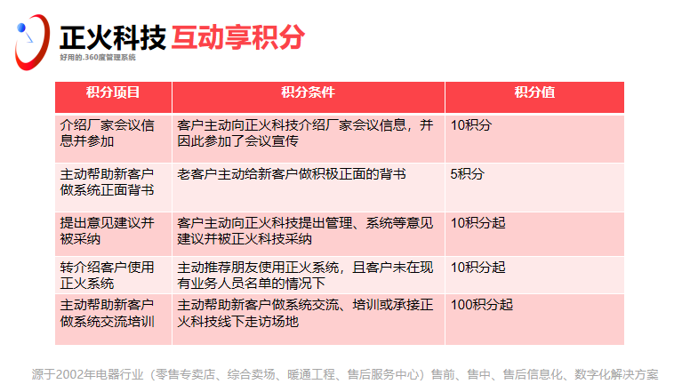 正火科技在2022年团队伙伴集中调研走访新老客户时广泛收集到的宝贵意见建议后,2023年我们将启动公司内部全员和客户全员的积分兑换政策,打通了系统及人的线上线下销服一体化,实现内部全员营销,同时与我们的客户合作共赢的积分模式,客户更是我们重要的合作伙伴,正火春风行首先给大家吹的就是积分兑换风!正火科技首先践行,欢迎大家一起落地尝试,执行!行动才会成功!