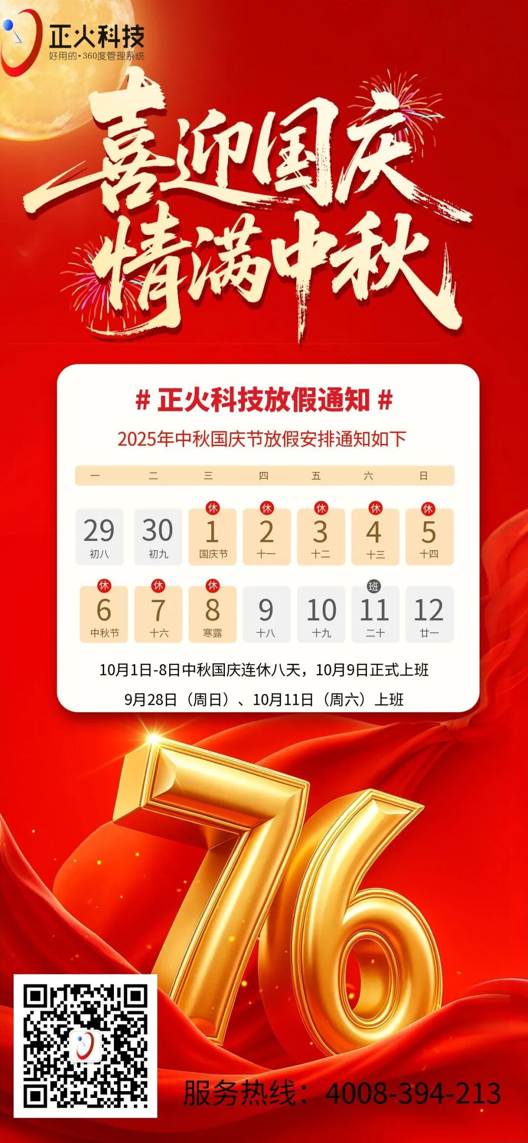 正火科技2025年国庆中秋放假通知!
